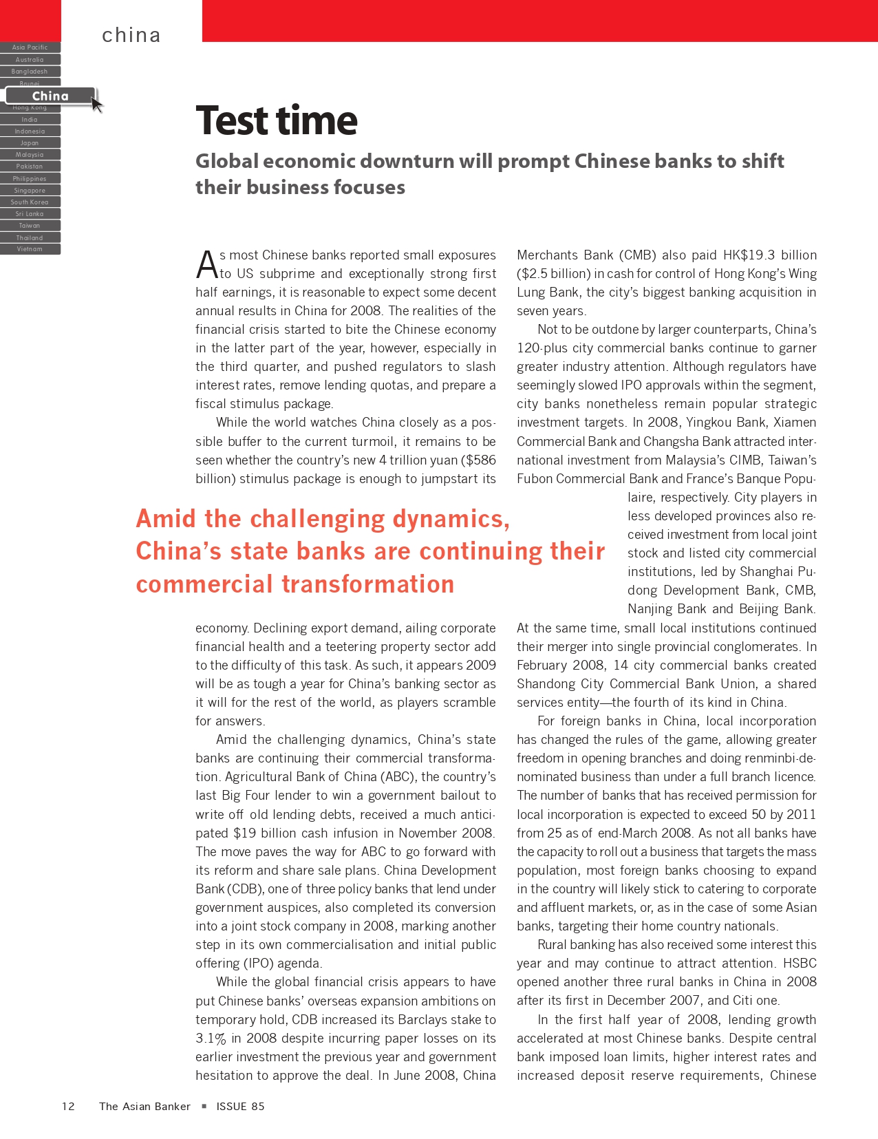 This year’s banking industry outlook report highlights the unique challenges to each country from the global crisis; deteriorating asset quality will be the biggest headache for banks moving forward; with 17 country capsules.