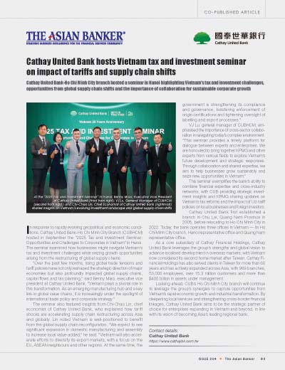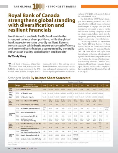This special edition of TAB Global 1000 ranks the world's largest and strongest banks of 2025, showcasing the financial strength, resilience and market dominance of top institutions like Royal Bank of Canada, China Merchants Bank and JPMorgan Chase. As the global banking sector faces slower growth, structural headwinds and rising regulatory pressures, this year's rankings highlight how firms are adapting. Chinese banks, including Industrial and Commercial Bank of China and Agricultural Bank of China, continue to lead, while regional champions rise in prominence through efficiency and digital adoption. The edition also previews Sibos 2025, taking place in Frankfurt where innovations such as tokenisation, stablecoins, AI and digital assets in payments and securities will take centre stage. Exclusive interviews with Masahiro Kihara, President and CEO of Mizuho Financial Group and Marcelo da Cruz Carvalho, CEO of Banco Nacional de Comércio de Timor-Leste (BNCTL) provide insight into how banks are driving a cultural reset, digital transformation and expansion strategies.