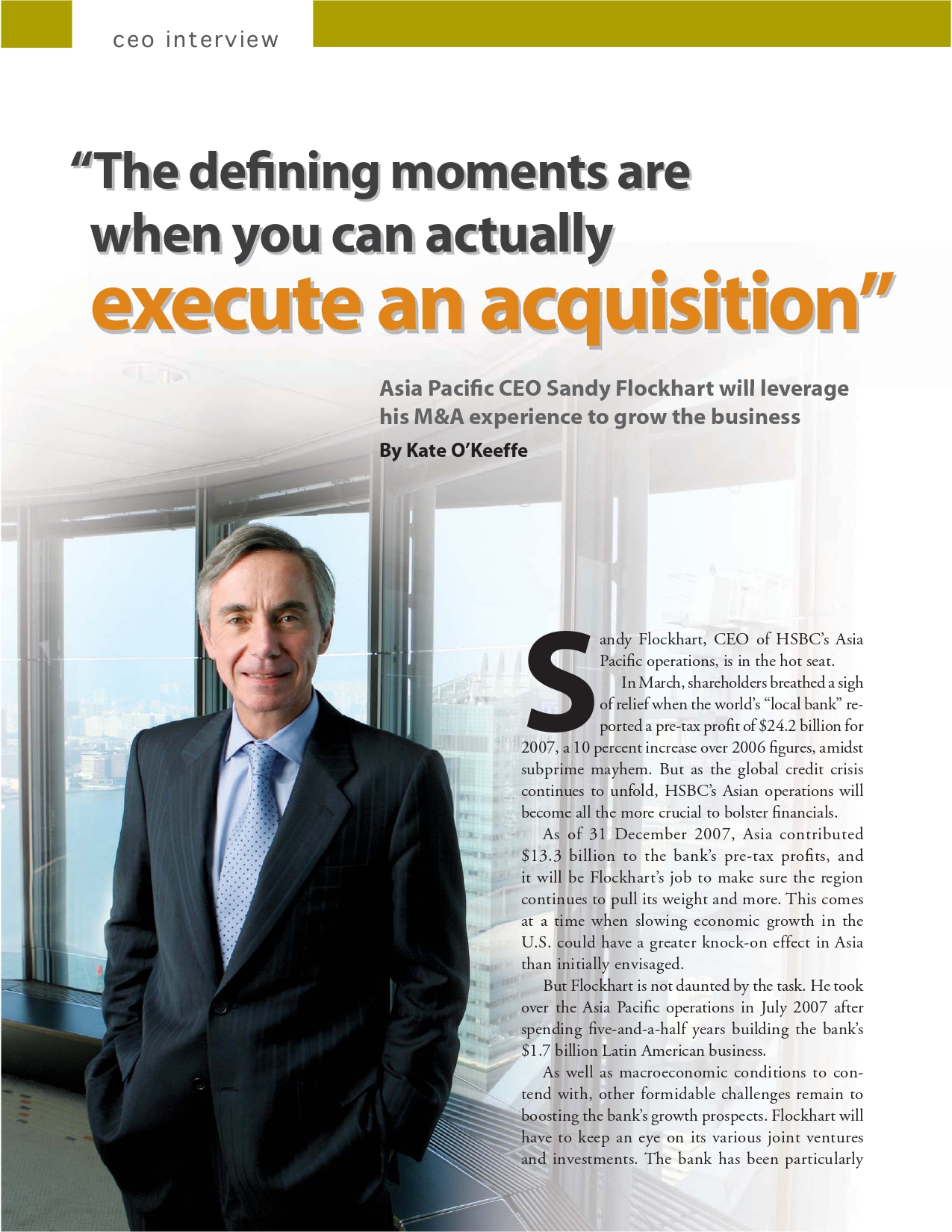 US Senator Paul Sarbanes, co-author of the Sarabanes-Oxley Act, speaks out on regulation and the subprime crisis; interview with HSBC Asia CEO Sandy Flockhart on his strategy to drive business in the East as the bank's US franchise struggles.